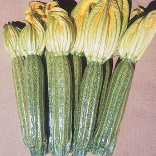 E’ un ibrido di straordinaria produttività e precocità. Le piante sono compatte e si coltivano a 80 cm l’una dall’altra. In 50 giorni maturano i primi frutti. La fioritura è incessante ed i frutti di un bel verde scuro sono lunghi cm 20-22, cilindrici, regolarissimi. La polpa è bianca e dolce. (Catalogo Ingegnoli)
